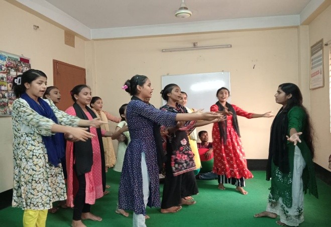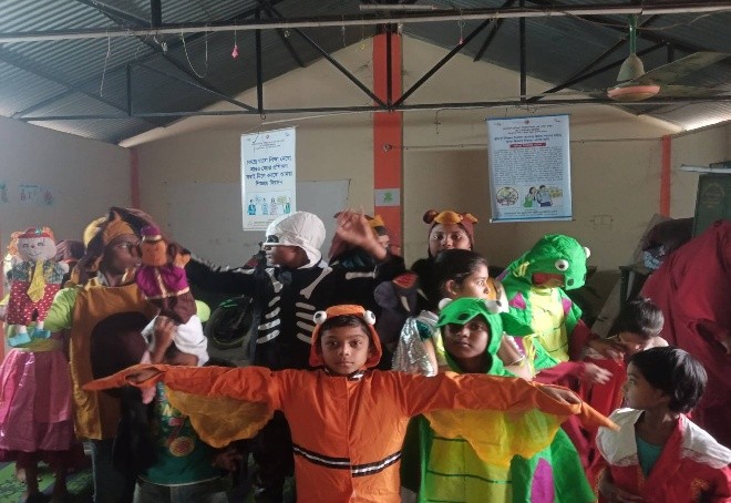 In different topics and issues our adolescents team make the script by finding out the problems after that time they performed selective place. We believe that this theatre activity opens up the new and innovative window in our stakeholders’ minds . Puppe show: In order to incourage as well as create awarness building on issue based like joyful learning on puppet show has being demonstrated for special children, kids of special school, children & education club and the community. IPT show: Intereactive puppet show also being demonstrated on early marriage, child rights, disabilty rights, child trafficking, drugs, child abuse, climate isssue, stigma reducing and other different issuses.